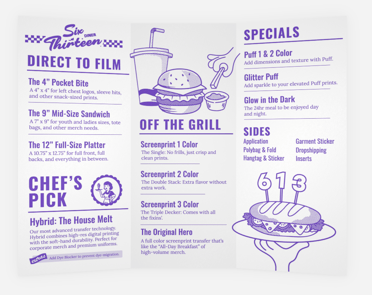 The 613 Diner Menu made it simple to understand what we can produce and how we can support promo programs moving forward:
